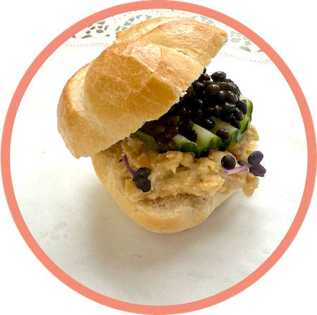 mehr Infos zum ProduktLaktosefreiNEUVeganLinseHumusKarfiol | J1010 Stück VEGAN | Kaisersemmerl | Humus aus Linsen und Karfiol, Belugalinsen, Gurke 10 pieces VEGAN | Bread roll| humus from lentils and cauliflower, Beluga lenses, cucumber vegan = laktosefrei