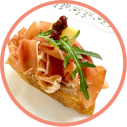 mehr Infos zum ProduktNEUSerrano | B1010 Stück |Baguette (Lokalbäckerei Brotzeit) | Serrano, Parmesan-Frischkäse, getrocknete Tomaten, Olive, Parmesan, Ruccola 10 pieces | Baguette (local bakery Brotzeit) | Serrano, parmesan cheese, dried tomatoes, olive, parmesan, arugula
