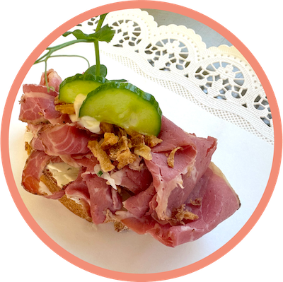 mehr Infos zum ProduktEchterWiener Tafelspitz | B1010 Stück |Altbayrisches Bauernbrot (Lokalbäckerei Brotzeit) | Kalbstafelspitz, Remoulade, Apfelkren, eingelegte Radieserl, Senfkaviar 10 pieces | Bavarian farmer's bread (local bakery Brotzeit) | Veal fillet, remoulade, apple horseradish, pickled radishes, mustard caviar