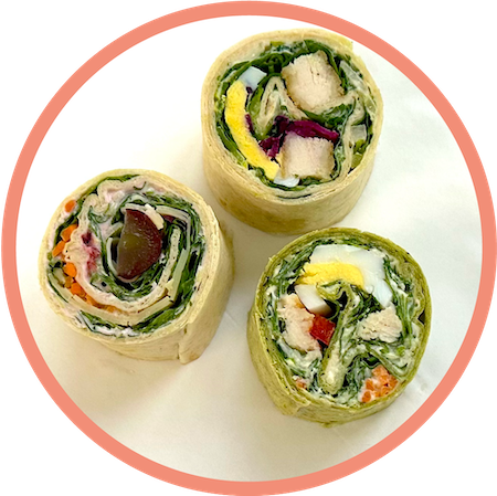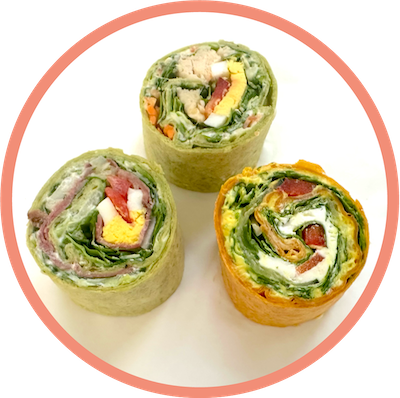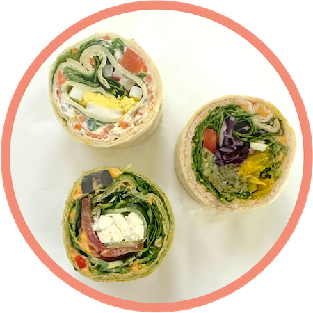 - A Toscana Wrapini®: Spicy tomato spread, olives, feta cheese, tomato, cucumber