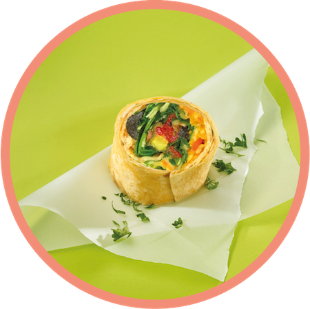 mehr Infos zum ProduktNEUVegetarischA Veggie Wrapini® | 1515 Stück | sortenrein | Wrap-Fladen (Weizentortilla) | W®-Salatmischung mit Ruccola Knackgemüse-Aufstrich, Karotten, Radischen, Bergkäse, Ei 15 pieces | single-variety | Wraps (wheat tortilla) | W® salad mix with arugula, crispy vegetable spread, carrots, radisches, mountain cheese, egg
