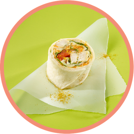 - A India Wrapini®: Curry-Ananas Aufstrich, Hühnchenstücke, Paprika, Karotten