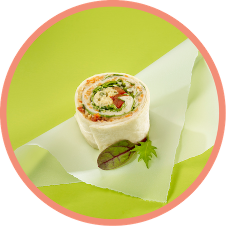 mehr Infos zum ProduktNEUVegetarischA Toscana Wrapini® | 1515 Stück | sortenrein | Wrap-Fladen (Weizentortilla) | W®-Salatmischung mit Ruccola Pepperdew-Aufstrich, Olive, Tomate, "Hirtenkäse"