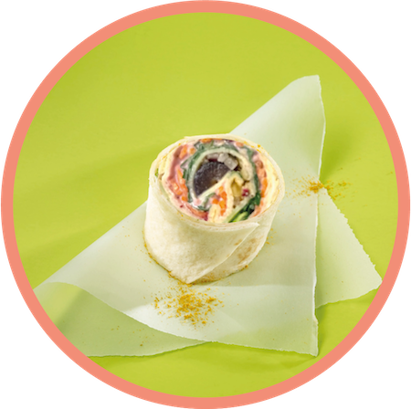 mehr Infos zum ProduktVegetarischA Bergsteiger Wrapini® | 1515 Stück | sortenrein | Wrap-Fladen (Weizentortilla) | W®-Salatmischung mit Ruccola Bergkäse, Preiselbeerecreme, Chutney, rote Trauben, Walnüsse, Karotten